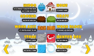 Hippo lives in splendid fairy-tale locations. He likes to walk in unfamiliar places, and often falls into place from where hard to get back home and not to be caught by angry blocks.